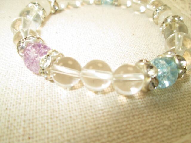 透明感あふれる水晶と、きらめくクラック水晶を組み合わせた、華やかで可愛らしいブレスレットです。