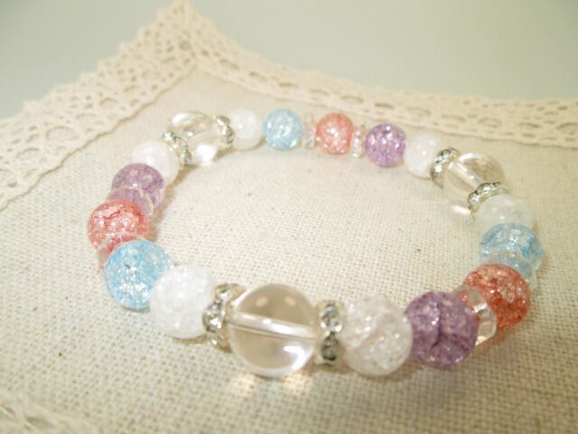 透明感とキラキラした輝きが手元を可愛らしく彩るブレスレットです。