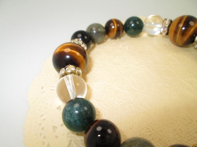 ● 使用石:タイガーアイ15mm×2個/タイガーアイ10mm/水晶10mm/オニキス10mm/アベンチュリン10mm/ラブラドライト10mm