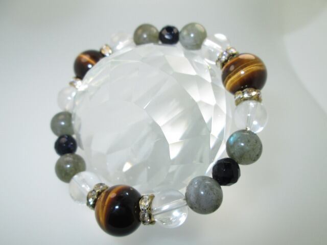 ● 使用石:タイガーアイ15mm/水晶10mm/ラブラドライト10mm/ゴールドストーン(人工石)