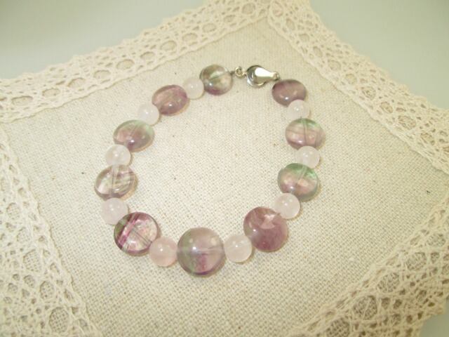 ● 使用石:フローライト ボタンカット10mm/ローズクォーツ6mm