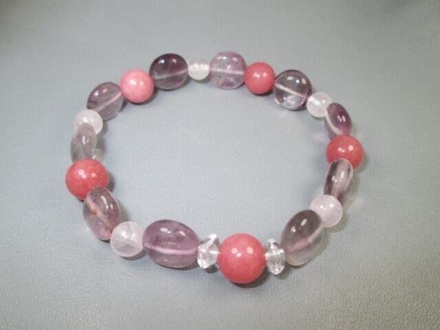 ● 使用石:フローライトコインカット10mm/ローズクォーツ6mm/ロードナイト8mm/水晶タイヤカット